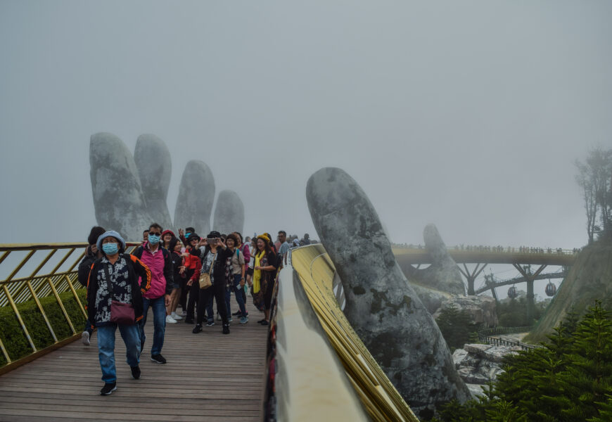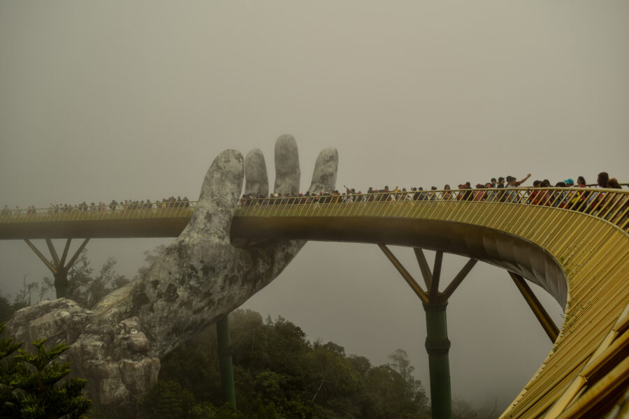 One of the sights that convinced me to spend a fortnight in Vietnam was that of two life-size hands ancient and moist, hold the curved bridge against the flat panoramic horizon views beyond. The picture, which had gone viral on Instagram, instantly etched itself into my travel plans. That was the moment I knew I had to see the Golden Hand Bridge at Ba Na Hills for myself.