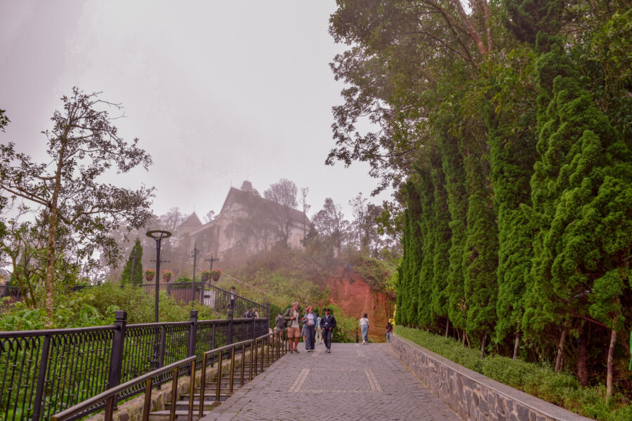 But Ba Na Hills does keep reminding you that it’s not touristy, but a fairytale come alive. And the biggest act here is put up by its fickle weather. Just as we were admiring the view, a thick mist rolled in, wrapping the hills in a ghostly white veil. Within minutes, visibility dropped to almost zero, turning the entire scene into an ethereal dreamscape.