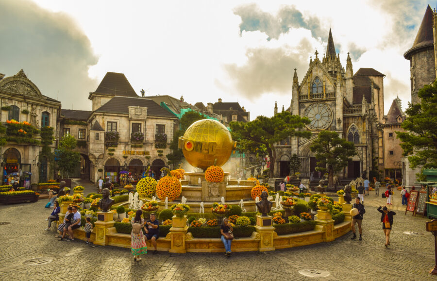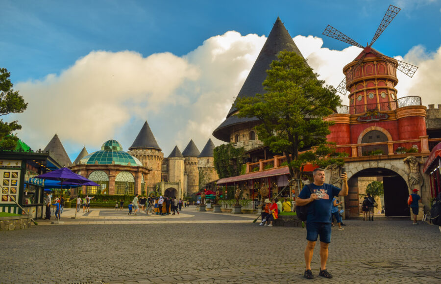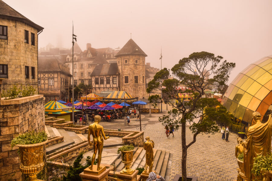 As the cable car drew closer to the hilltop, the landscape began to reveal its secret. Ba Na Hills isn’t a quiet retreat but a full-blown wonderland. The mountaintop has been transformed into the vibrant SunWorld theme park, complete with roller coasters, lively street performances, a 3D theatre, and the exhilarating Flying Swing. Ba Na Hills will take you by surprise — it’s far more than you could ever imagine finding perched atop a misty mountain.