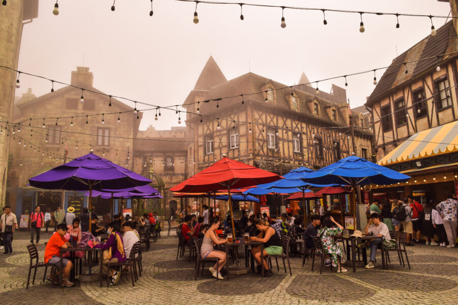 While Level 1 offers beautifully landscaped gardens that set the tone for what lies ahead, Level 2 transports you to the heart of rural France. But before you get there, there is a whole set of French architecture hotels that stand in a semi-circle. Some of the names you will see there are Hotel De Lyon, Hotel De Bordeaux, and Hotel De Toulouse. These hotels aren’t just for show; you can stay in them and soak in the old-world charm.